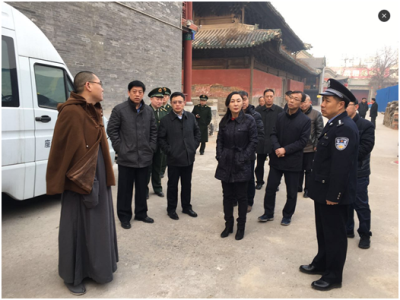1月26日上午,区领导冯原平、李慧、侯富田、王国栋、曹炬、魏毅、岳旭强一行对辖区内重点寺庙进行安全指导检查,区安监、消防、公安、执法、宗教及文庙街办、郝庄镇等部门负责人陪同。