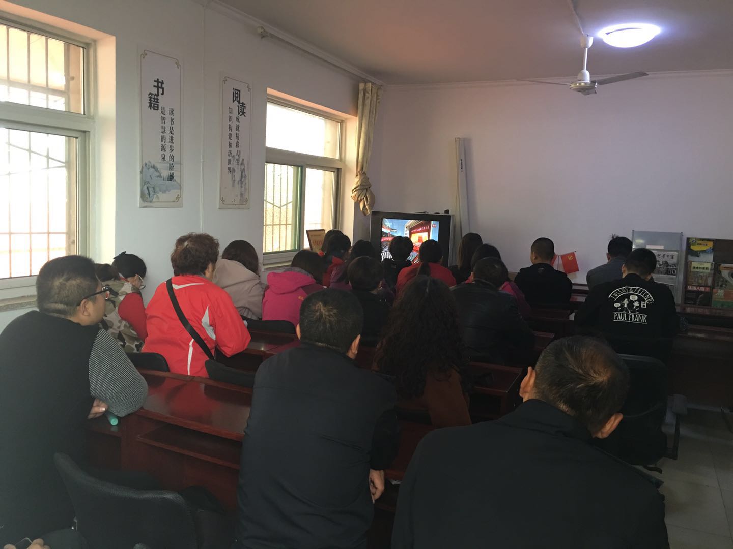 今天十九大开幕会在人民大会堂召开,朝阳二社区组织党员、干部、群众集中观看十九大开幕式,听取习近平总书记代表第十八届中央委员会作的报告,激发党员干部的进取意识和忧患意识,激励广大党员干部群众不忘初心,砥砺前进。